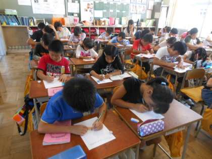 先週元気に活動してきた自然教室について、振り返りました。「大自然 友と楽しむ 3日間」のスローガンのもと、1人1人が自分の役割を果たし、グループで協力し、充実した3日間を過ごすことができました。