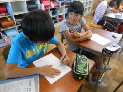 楽しかった自然教室をふり返り、絵日記風にまとめました。友達に対しての優しい姿、自分の仕事に責任をもって取り組む姿を、日々の学校生活でも見せられるよう頑張っていきます。
