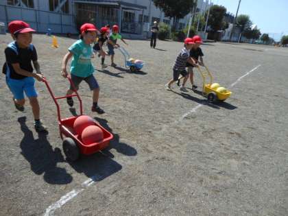 2年生では、運動会でもおこなった「ふしぎなたまごのたっきゅうびん」をやりました。