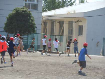 修学旅行も間近にせまった6年生。どんな気持ちで旅行に出かけるつもりなのか、学級で2人ずつ話をしてもらいました。ゲームでは、「逃走中」と題して、運動場せましと走り回りました!