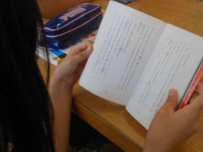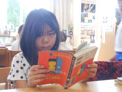 まわりが少々にぎやかでも、ものすごい集中力で本を読み続けています。