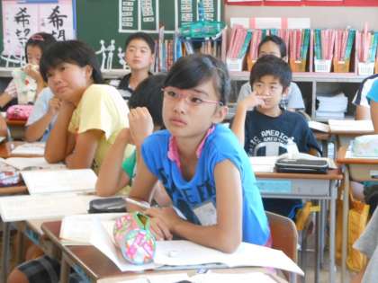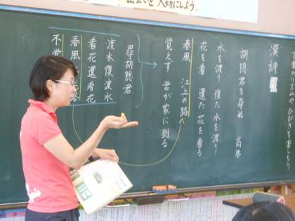 漢字だけの詩を、どうやって読むのか、真剣に説明を聞いていました。
