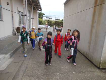 登校して来た子どもたちです。