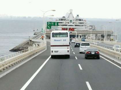 東京湾のど真ん中、アクアラインの海ほたるから海底トンネルへ。