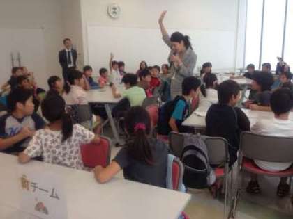 午後の体験が始まりました。3.4組はお金のしくみ講座です。