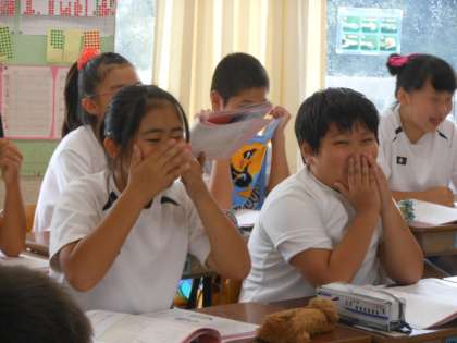 早口言葉は難しくて、みんな頭をかかえて一生懸命練習していました。