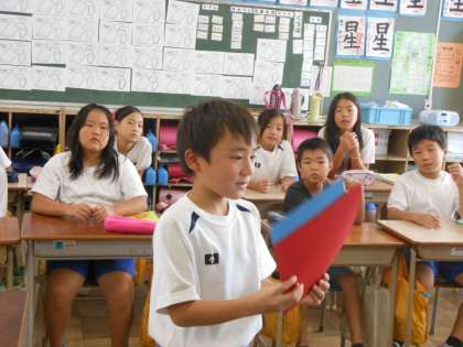 面積に入りました。まだ面積という用語は教えていませんので、広さという言葉で学習を進めました。広さ比べの方法をいろいろ考え、正方形がいくつあるかで比べる方法が一番はやく、簡単、正確(はかせ)ということが分かりました。