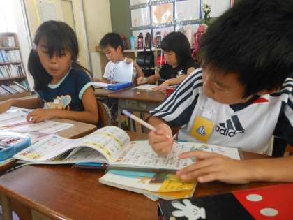 毎日、新しいかん字を2文字ずつ習っています。2年生は、とてもおぼえるかん字が多いのでみんな必死に書き取りをしています。