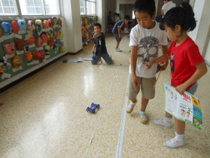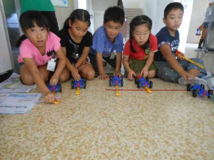 ゴムの伸ばし方で、車の走りがどう変わるかを調べました。