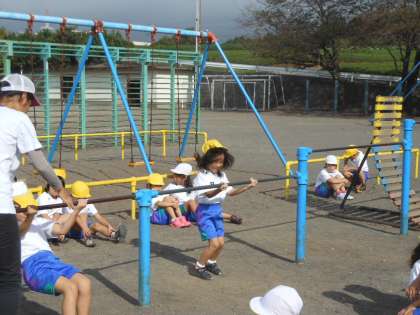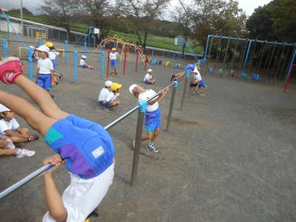 てつぼうの得意なお友だちに、お手本を見せてもらってから練習しました。