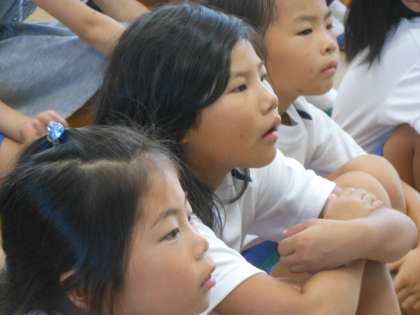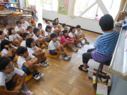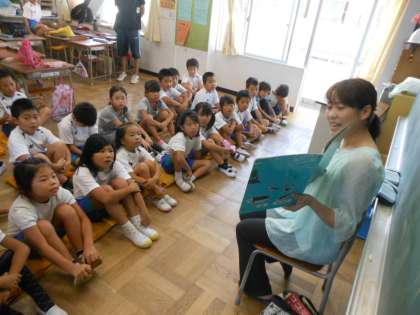 2年生の教室です。みんな、お話の世界に入り込んでいます。