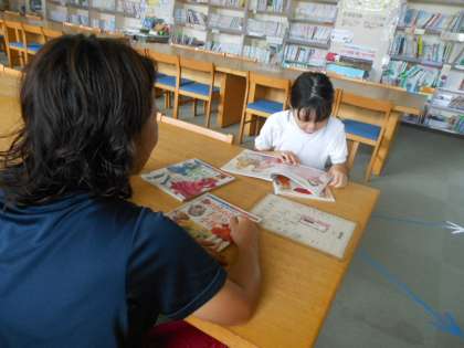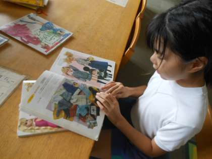 10月末のハロウィンに向けて、どんなことをしようか、図書館の本を使って先生と相談しました。
