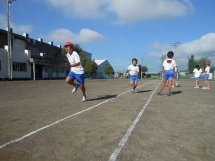 リレー大会に向けて、まずは100m走の計測です。これからチームを組んで、いよいよ来週からは練習が始まります。A、Bそれぞれのチームで競い合い、励まし合いながら記録を伸ばせるといいですね。
