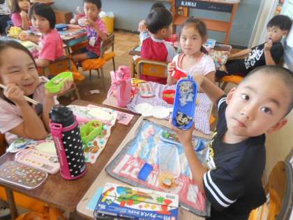 みんな、おうちの人が一生けん命作ってくれたお弁当をおいしそうに食べています。