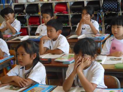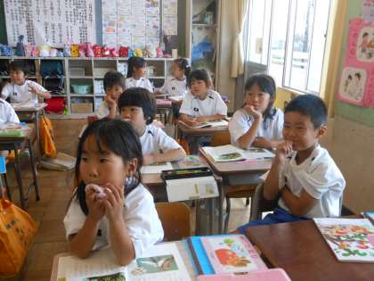 「まめはたねです。生きています。」という言葉のしょうこを見つけようと、1学期に育てたあさがおとくらべながら読みすすめています。「あさがおの花びらは何枚だった?」の質問に、「何枚だっけ・・・?5まい?6まい?」絵をかいて思い出してから、まめの花の写真と比べました。