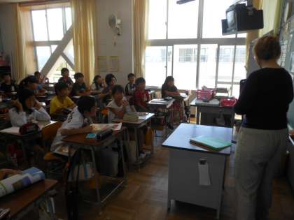 自分の好きな食べものの味と食感を、英語で発表しました。