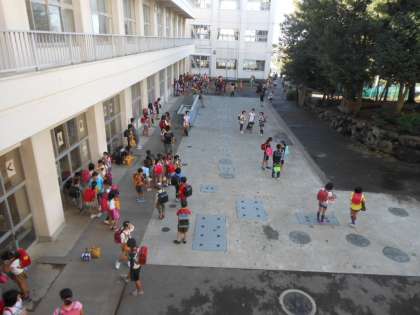 10月16日(水)の朝、台風26号接近に伴う大雨や強風のため、9時までの登校になりました。