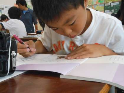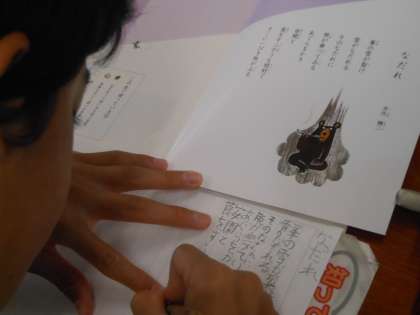 1時間目の算数『比』の練習問題が3問残ってしまったので、それらを解いてから国語の詩『なだれ』に入りました。今日から、下の教科書に入りました。