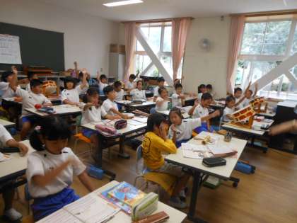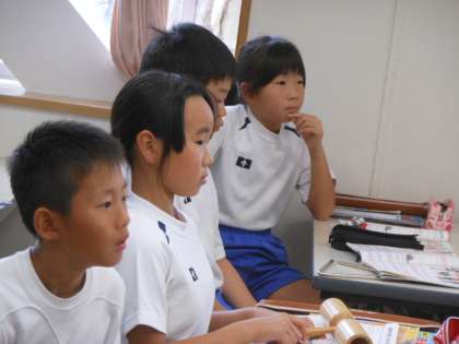 4人グループで「音のカーニバル」の合奏にチャレンジしました。リズム打ちをつなげるのは、なかなか難しいです。