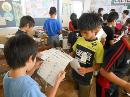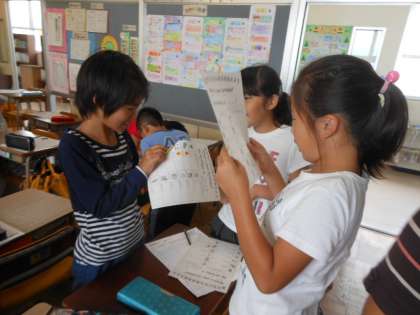 たくさんのお友だちに自分の誕生日を伝える活動を通して、英語の月の名前を覚えました。「何回も言ったから、すらすら言えるようになった。」「お友だちの誕生日を知れて楽しかった。」「今度は、日まで言ってみたい。」などの感想が出ました。
