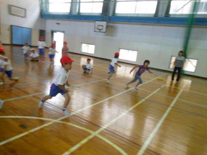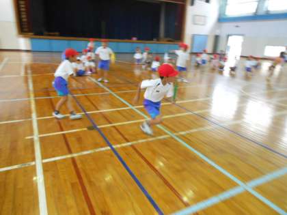 今日はバトンを右手でもらって左手で渡すことをめあてに練習しました。