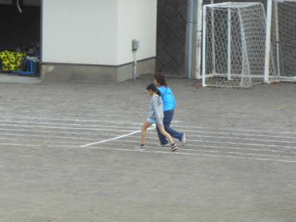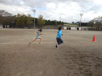 リレー大会が近いので、ジョギングで体を温めた後、ダッシュの練習をしました。