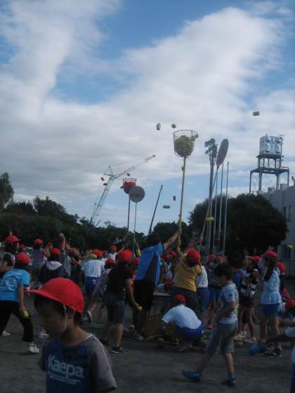 学年集会「スーパーガード玉入れ」その1 (5年)