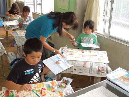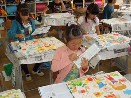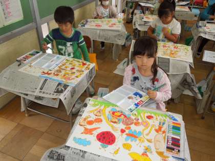 「もし、虫の世界に行ったら・・・」と、想像をふくらまして描いている子。
