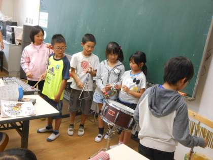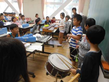今まで班ごとに音探しをして、魔法の音作りに取り組んできましたが、今日はいよいよ発表会です。みんな他の班が作った音の響きを楽しんで聞いていました。