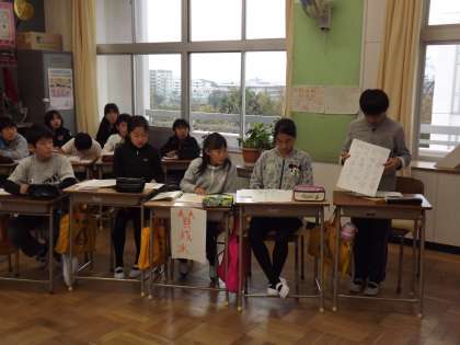 役割を決めて討論会をしました。今日の論題は「秋休みをつくった方がよい。」と「学校にエスカレーターをつけた方がよい。」でした。それぞれが根拠を明確にして主張することができました。