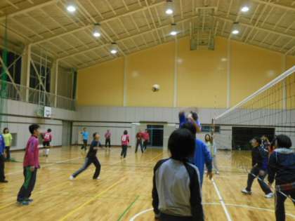 11月15日(金)の夜、原小学校の体育館で、愛鷹小・中学校、原小・中学校、今沢小学校、千本小学校・第二中学校が集まって、バレーボール大会が行われました。1チーム2試合ずつ行い、愛鷹小学校は2勝しましたが、合計得点の差で今沢小学校に届かず、2位でした。