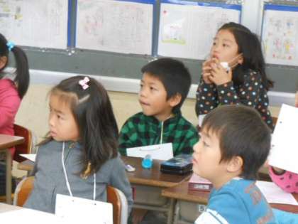 同じ動物でも日本語と英語では鳴き声が違うことを知り、おどろいている子が多いようでした。