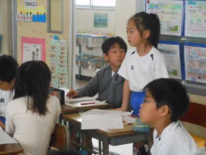 今日は、かさこじぞうの場面ごとにどんな内容なのかをかんたんにまとめようと話し合いました。「どこで」「だれが」「なにをした」の3つに気をつけながら読んで、かんたんに場面をまとめました。