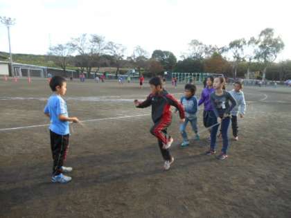 運動場を走っていた3年生は、担任の先生が出勤すると、駆け寄ってハイタッチで出迎えていました。