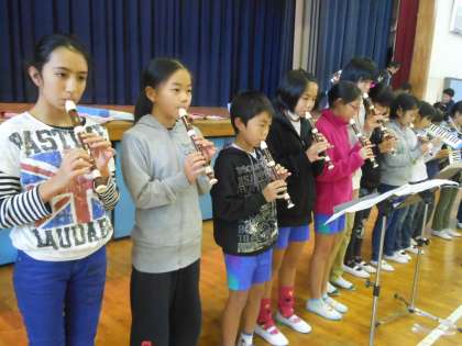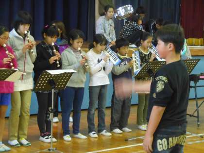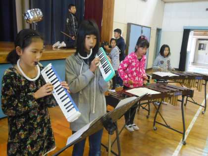 入退場の音楽を担当する音楽委員会の子どもたちが、朝から体育館で練習をしていました。