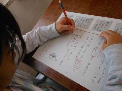 先生の説明を聞いて、問題を解きはじめました。回答を聞いて自分で丸付けをして、確認をしました。
