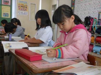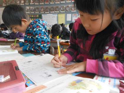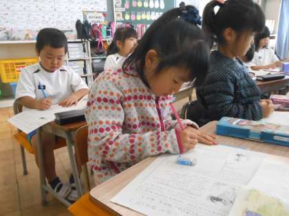 1の場面を音読し、登場人物の様子や気持ちを考えました。