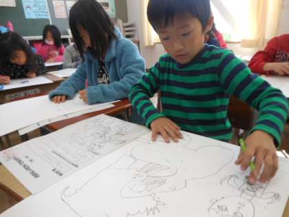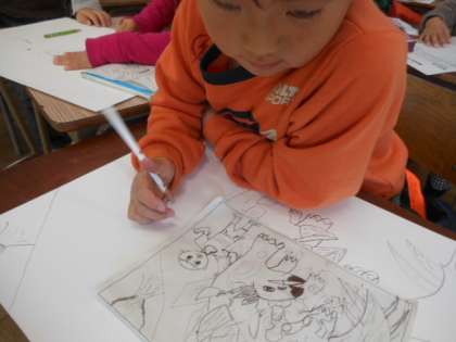 お話の世界に入って何がしたいのか、自分の思いをふくらませながらすすめました。