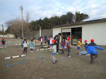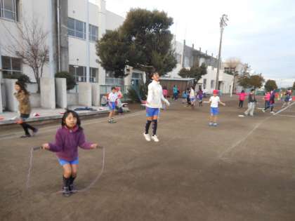 子どもたちは、元気に縄跳び運動に取り組んでいました。