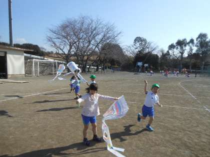 凧揚げをするのは初めてという子もいて、凧が揚がると大喜びでした。