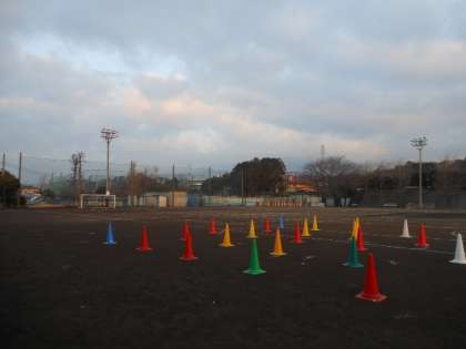 1月22日(水)の朝、昨夜雨が降ったようで、運動場がしめっていました。雲がかかっていますが、天気は回復するとの予報です。