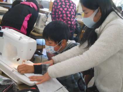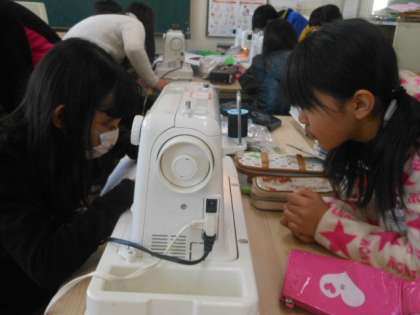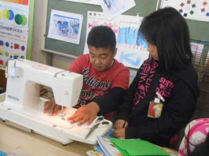 ミシンの使い方を練習しました。下糸の巻き方も、みんなしっかりできました。