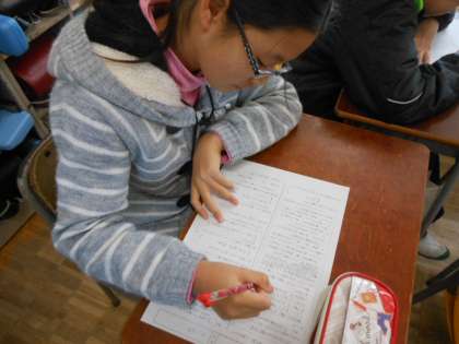 小学校のまとめである6年生、プリントを使って、国語の問題文からの読み取りや算数の復習に取り組みました。