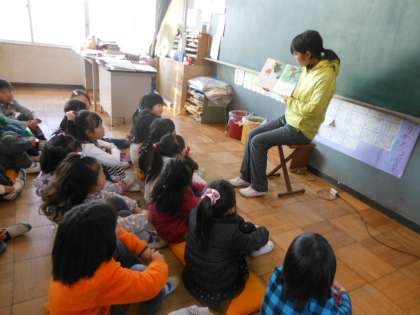 こちらの教室では、担任の先生が読み聞かせをしていました。
