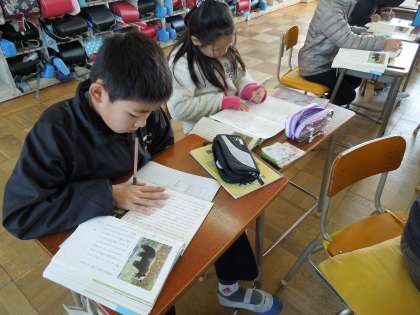 『やまね』の冬眠のしかたについて読み取り、表にまとめました。