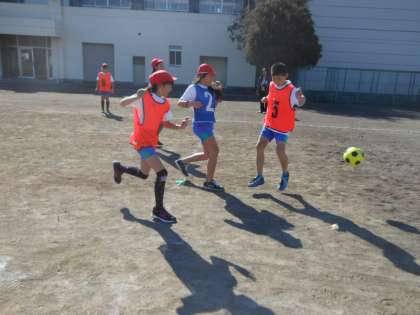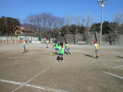 5対5で対戦するので、運動量が多く、どの子にもボールを蹴るチャンスがありました。体育着になって最初は寒そうだった体もすっかり温まったようです。