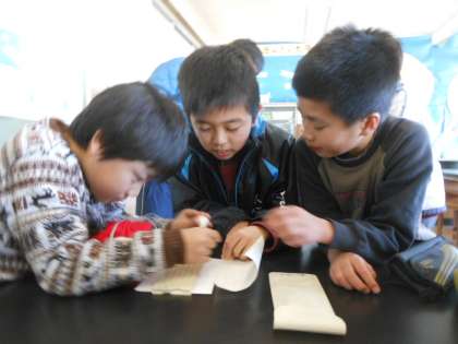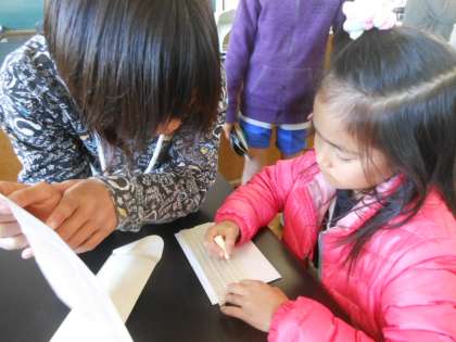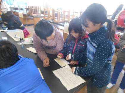 昼休みに、2年生の点字体験が行なわれました。福祉委員に教わりながら点字板で実際に点字を打って、出来上がった点字をさわってみます。この体験を通して、少しでも目の不自由な人の大変さがわかればと思います。