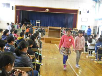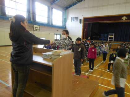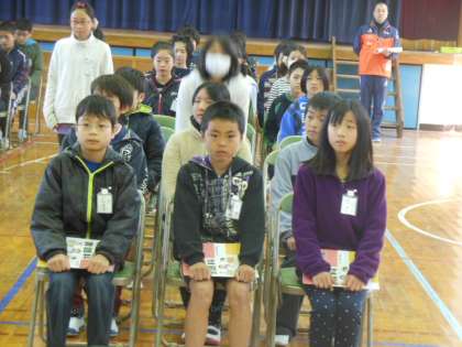 冷え込む体育館で、5・6年合同の卒業式練習です。入場から証書授与、退場まで一通り流して練習しました。緊張感を持って取り組むことができました。
