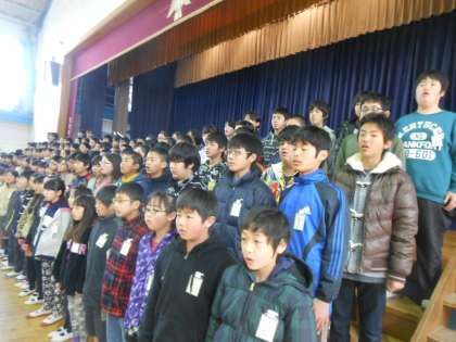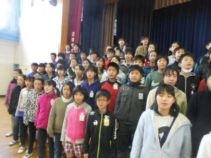 「卒業の言葉」の練習では、一人一人の思いが伝わるように、声の大きさやタイミング、発音など気をつけて取り組んでいます。歌声も体育館いっぱいに響くように、がんばっています。