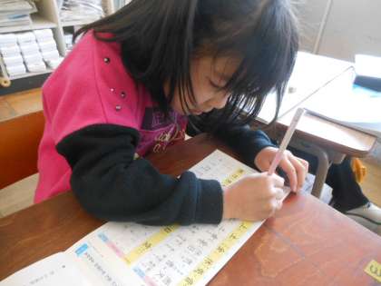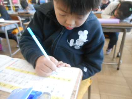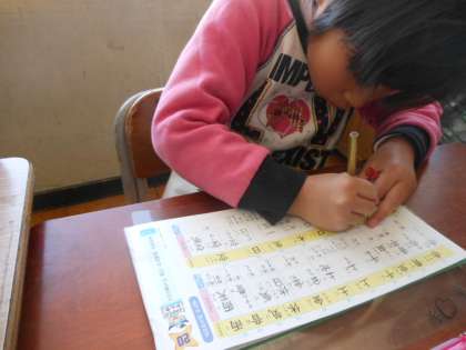 1年生で習う漢字を、ドリルを使って復習しました。